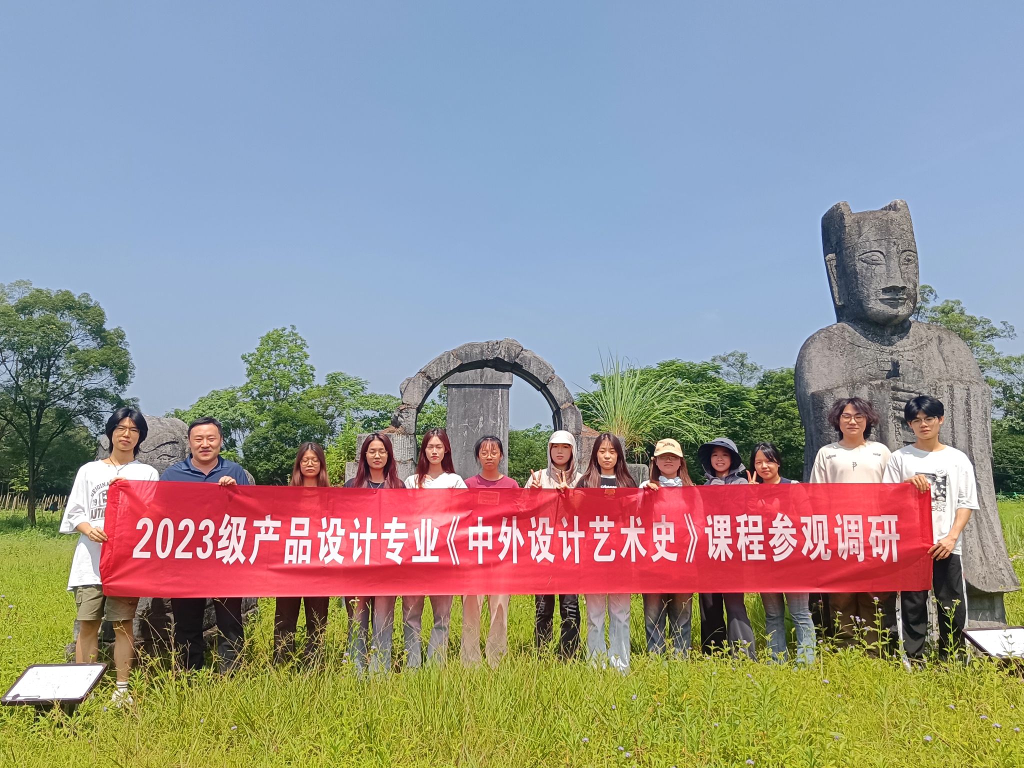 5月23日上午,自治区级一流课程《中外设计艺术史(A)》走出校园,赴靖江王陵国家考古遗址公园开展沉浸式现场教学。